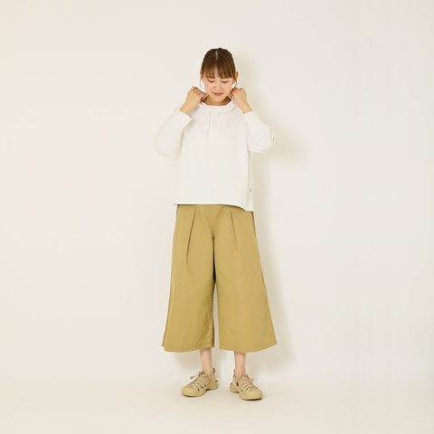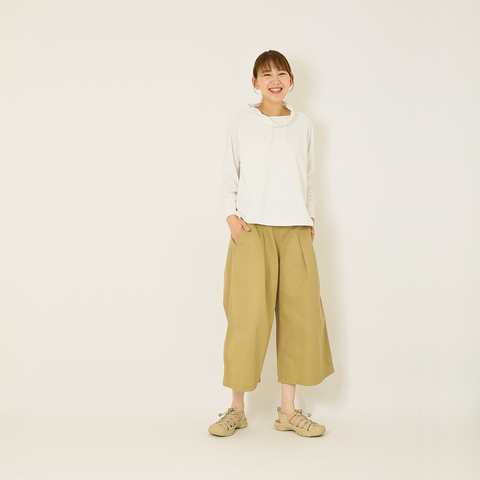 フードよりも軽やかに襟元を包んでくれるオフタートルネック。