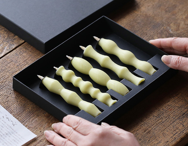ろうそくのデザインは、能登の里山に自生している植物の曲線をモチーフにしており、「この形はあの植物かな?」、「これはあの実っぽいな」と想像を膨らませるような形です。