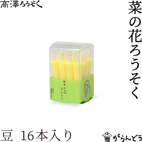 石川県七尾市にある和ろうそくの老舗「高澤ろうそく」が作る、菜の花ろうそく 豆 16本入り。