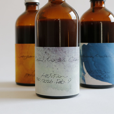 旅先で出会った空気や香りの記憶をもとに、スパイスを調合するブランド「HERRON」の、産地や文化の背景から着想を得て生まれた、3種類のチャイベースです。