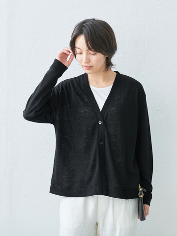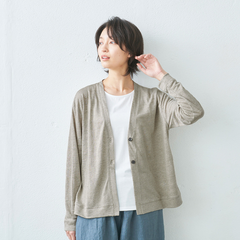 TOKYO BASIC|プレミアムリネン100% Vネック 2ボタン カーディガン