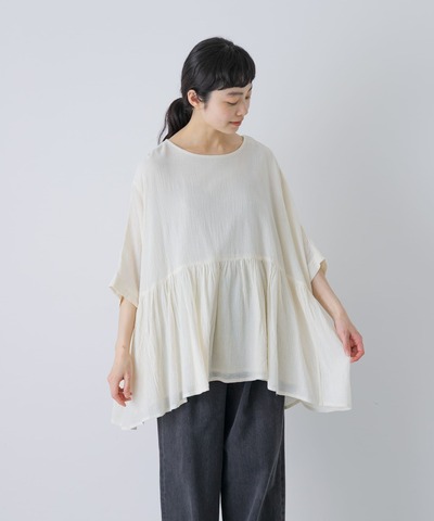 程よくギャザーが入っていて、気になる部分を拾わないパターンにも注目。