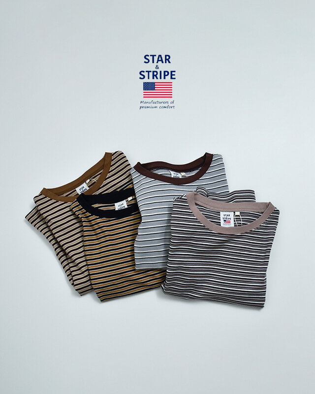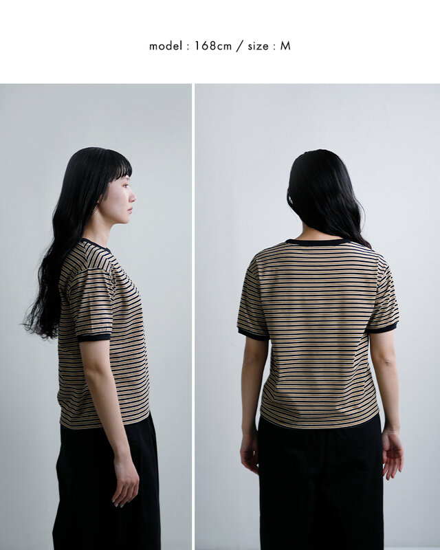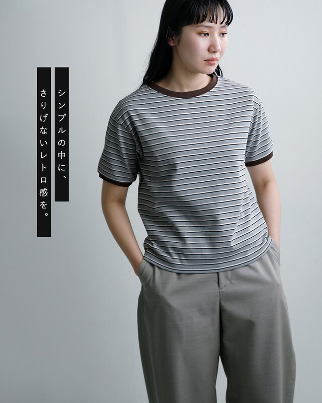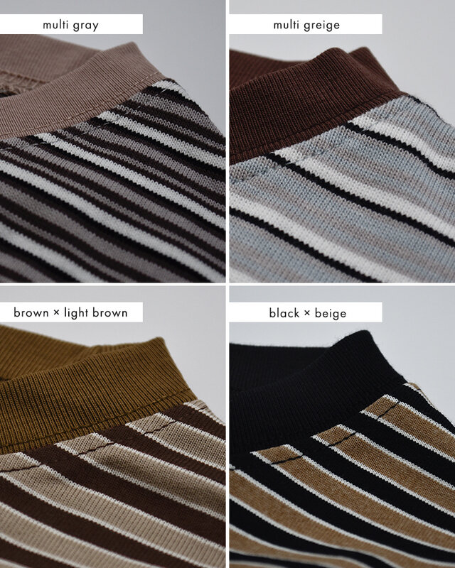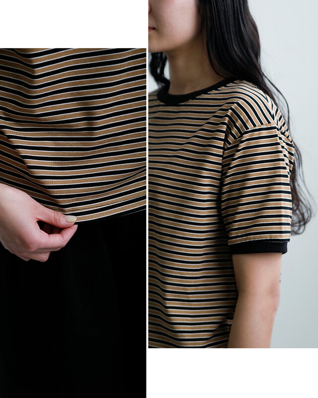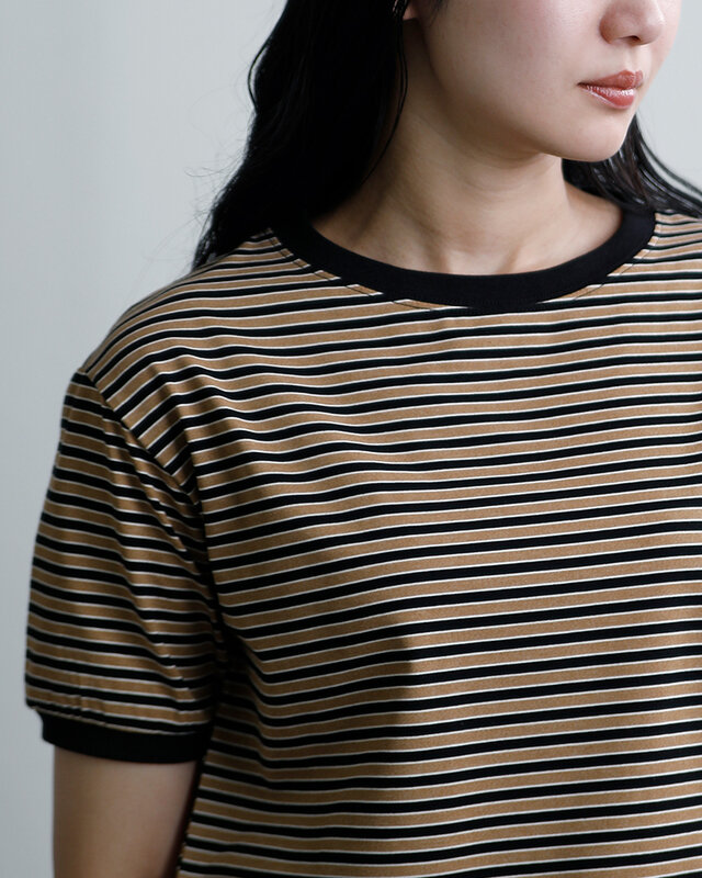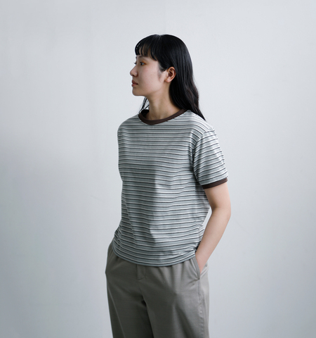 Healthknit|× HOSHII TO DEAU 【 aranciato別注 】ナローボーダー ジャージー モックネック ハーフスリーブ プルオーバー 51019