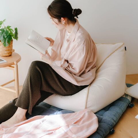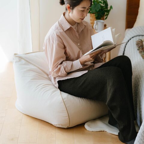 コンパクトなサイズですが安定感があり、アームチェアのような快適な座り心地。リビングや寝室、子ども部屋でもお気に入りの場所を作ってくれそう。