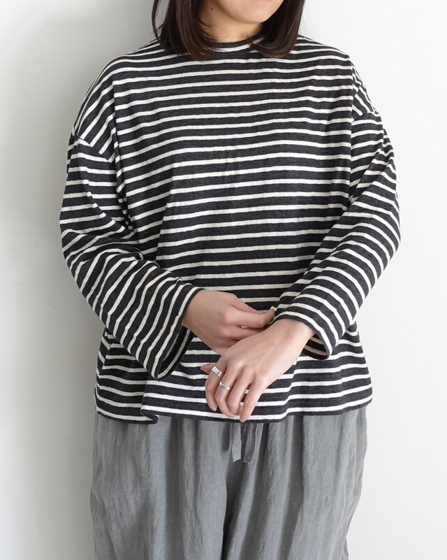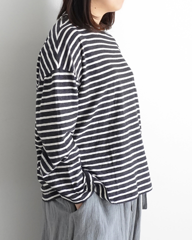 SOLAMONAT|パフ天竺 ボーダーリブベーシックロンT トップス ボーダーTシャツ プルオーバー カットソー 長袖 sma-puf-rib-longbd