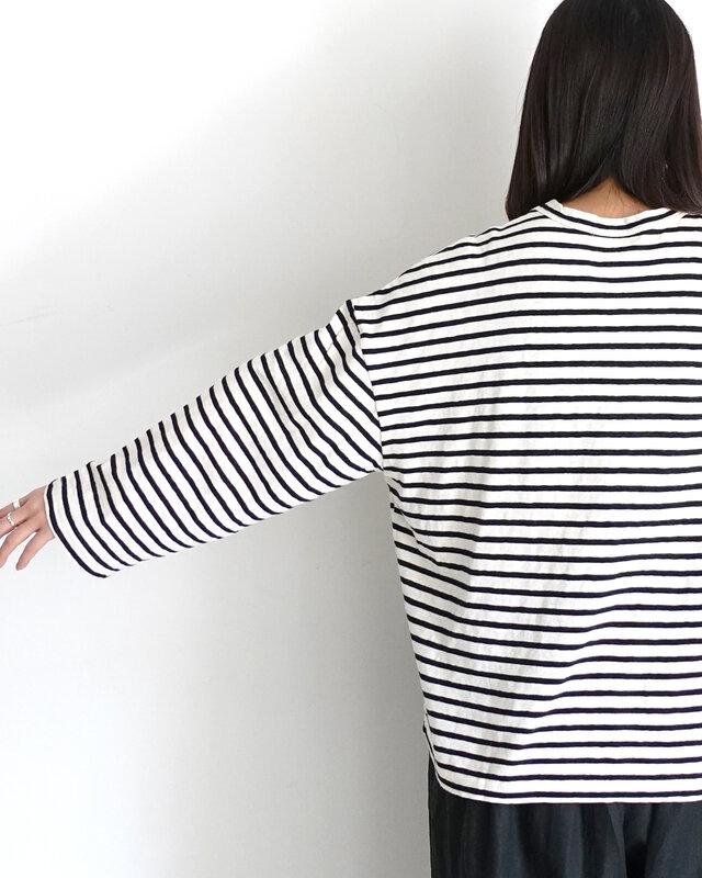Sans Souci 34+|見た目はTシャツ 裏フリースのぬくもり仕込み ボーダーTシャツ