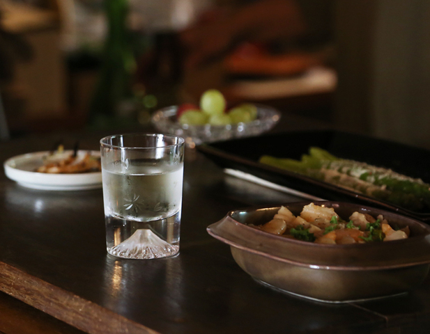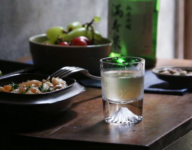 飲み物を注げば、山肌に映る色がきれいです。日本酒だったら白銀の富士山。ついついグラスをクルクル回して見てしまいます。