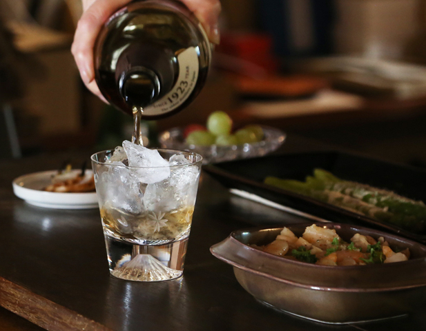 注いだ飲み物の色が富士山の色になってしまうというギミック付き。赤富士を見たい方はカンパリソーダを。青富士を見たい方はブルーハワイで。ちょっと昭和にタイムスリップしますが、お好きな方はぜひ。