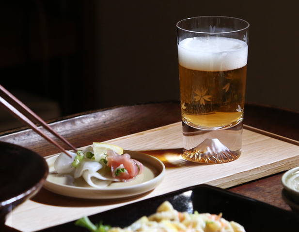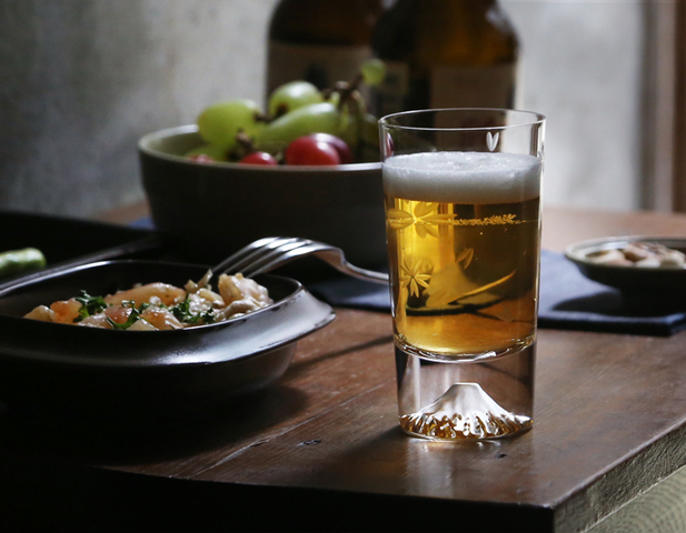 飲み物を注げば、山肌に映る色がきれいです。日本酒だったら白銀の富士山。ついついグラスをクルクル回して見てしまいます。