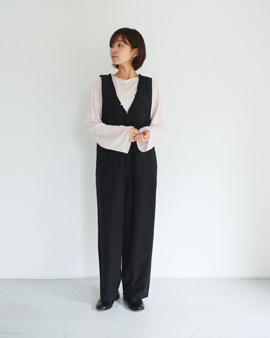 オリジナル生地を使用した、リトルフリルサロペット。コットンキュプラリネン素材ならではの軽やかさと落ち感が、心地よい着用感を叶えます。