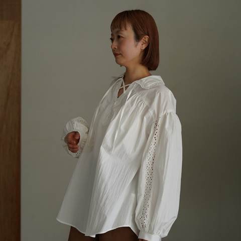 襟付きデザインがもたらす端正なムードと、ニットならではのやわらかな着心地。シャツよりもやさしく、Tシャツよりも品よく。ちょうどいい“中間地点”のトップスです。