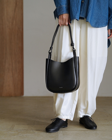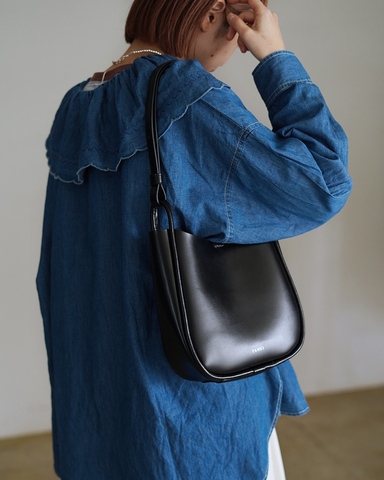 無駄を削ぎ落としたミニマルな佇まいに、やわらかな曲線が女性らしさを添えるショルダーバッグです。
