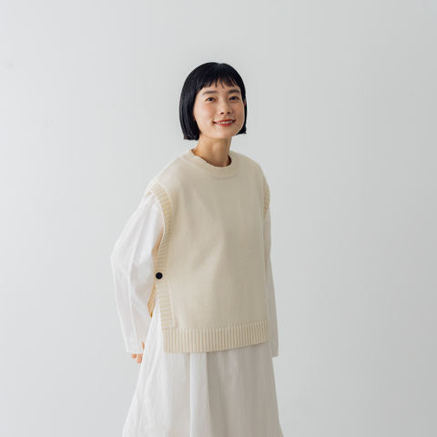 季節の変わり目の困りごとのひとつがお洋服。アウターやニットだと少し重く感じ、ストールだけだと冷っとする、そんな時に重宝するのがベスト。特にこの季節はコットン製の軽さのあるものがあると助かりますよね。