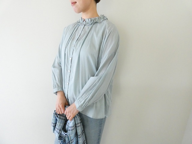やわらかなフリルが首元に表情を添える、utiliteの2wayシャツ。