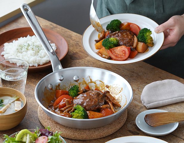「料理のプロが納得する製品作り」を掲げ、全国のホテルやレストランでその品質を証明してきた中尾アルミ製作所が作るアルミフライパン。