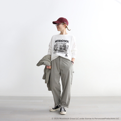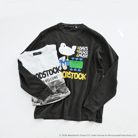 1969年にニューヨーク州で開催された伝説の音楽フェス「WOODSTOCK」。平和と愛、自由を象徴するこのフェスティバルは、音楽だけでなくカルチャー全体に大きな影響を与えました。この度のTシャツアイテムは、当時の自由で開放的なムードや、音楽とファッションが交差する空気感をイメージし、そのスピリットを落とし込んでいます。