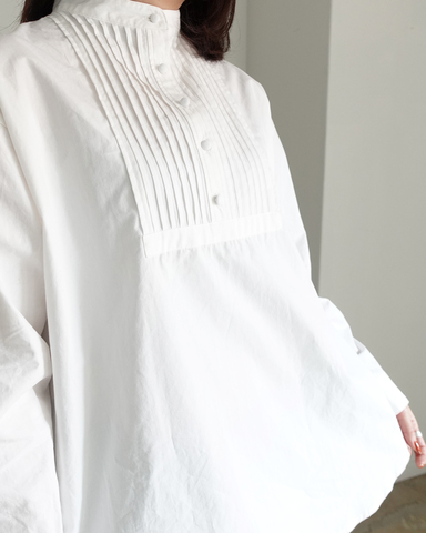 清潔感のあるベーシックなホワイト。ピンタックの表情が引き立ち、装いに上品さをプラスしてくれます。
