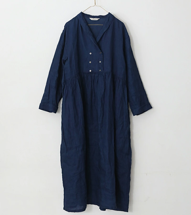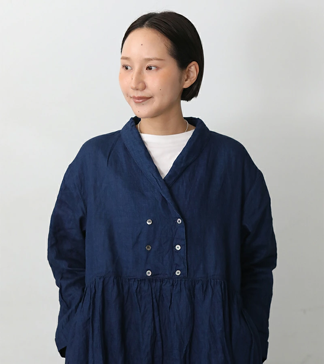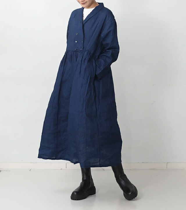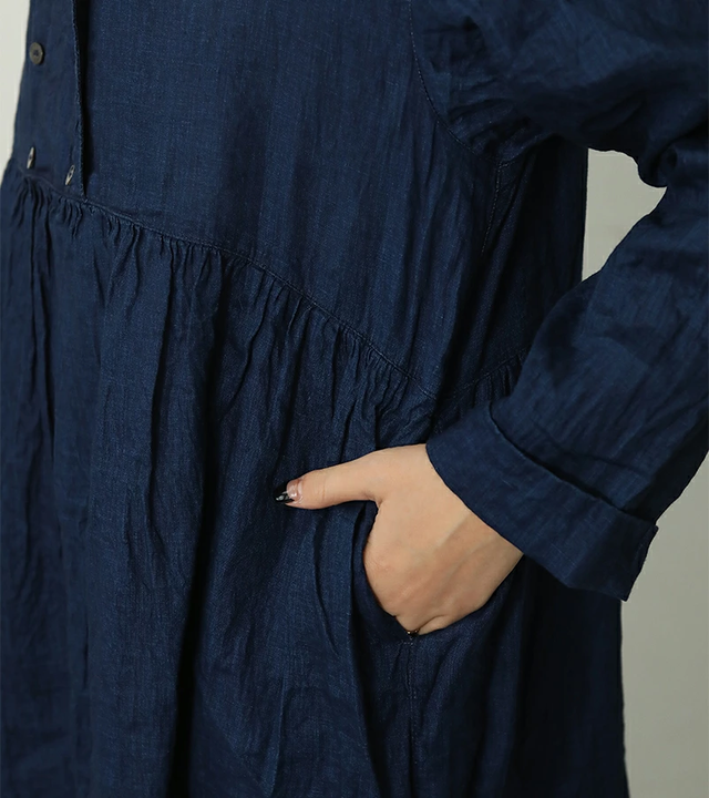 ichi Antiquités|首元と袖口のレースが上品なシャツワンピース リネンドレス kurashisha spring