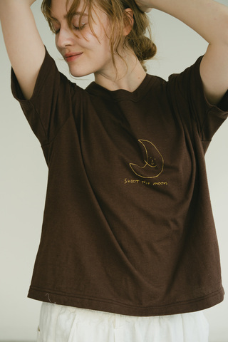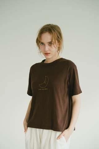 月の刺繍がそっと寄り添う、やさしい風合いのネップ天竺Tシャツ