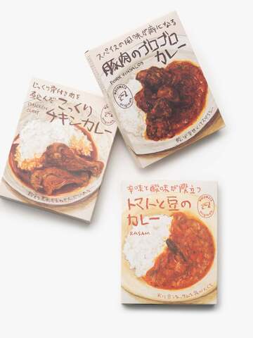 伊藤シェフに、まずは3種類のカレーのレシピを作成していただき、大量生産でも味がブレないように製造会社デリーと調整しながら作った力作のレトルトカレーです。わざわざらしく無添加で日本国内で製造していますので、安心してお召し上がりいただけます。