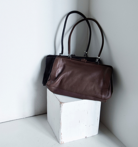 手に持つとクラシックな印象に、肩に掛ければ軽やかに。ハンドルを倒してクラッチバッグのように持つこともできるので、シーンや装いに合わせて自在に楽しめるバッグです。