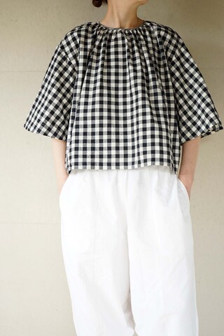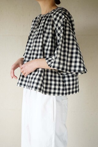 Gauze#|GINGHAM BELL SLEEVE PULLOVER