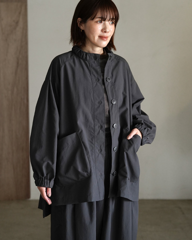 天候に左右されやすい日にも、さっと羽織れる軽やかな一枚。コットンライクなやわらかな表情をもつタスランナイロンを使用し、カジュアルさの中に落ち着きある雰囲気を添えました。