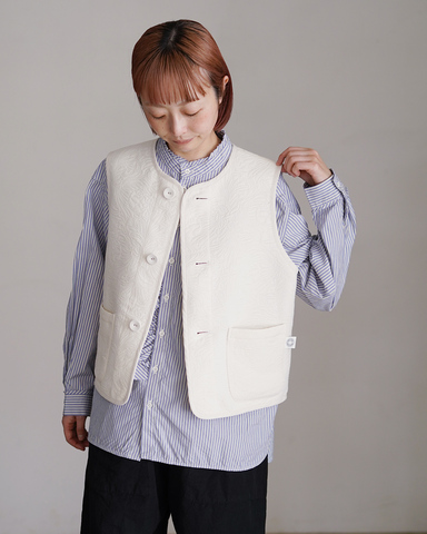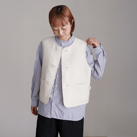 コットンポリエステル ジャガード カラーレス ベスト 」