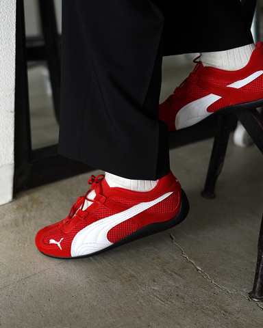 プーマの伝統を受け継ぐ「SPEED CAT GO」。レーシングシューズのDNAを持ちながら、現代のストリートファッションに馴染む洗練されたデザインが魅力です。