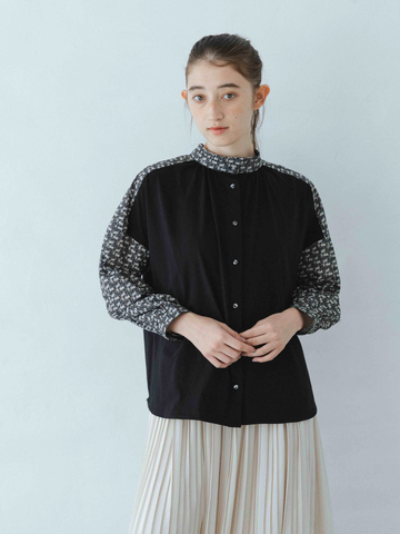PONT DE CHALONS|スタンドレースカラーピンタックブラウス