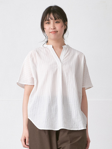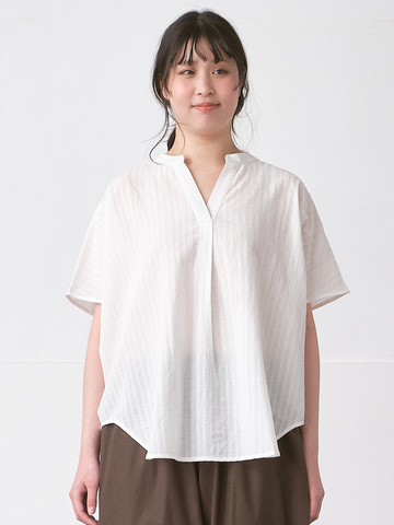 D*g*y|スタンドカラーブラウス 綿ボイルシャドウストライプ D9806