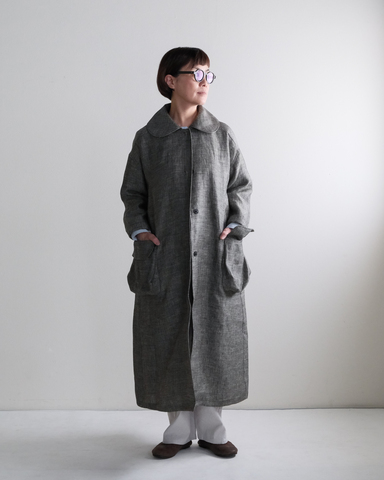 シンプルなシルエットでありながら肩と後ろ身頃の大きなボックスタックで、実はゆったり羽織れるコートです。