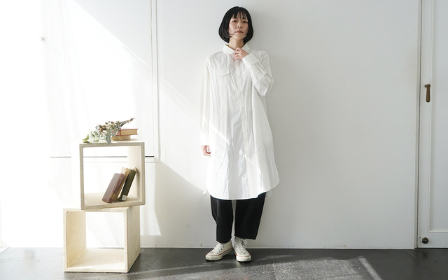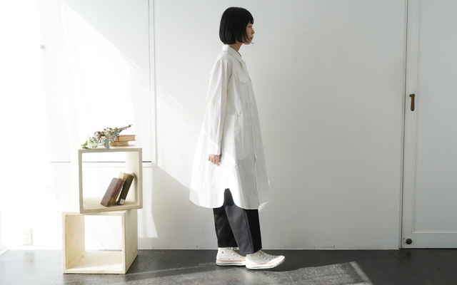 ストンとしたシルエットでメンズライクな雰囲気も出るロング丈のシャツ。