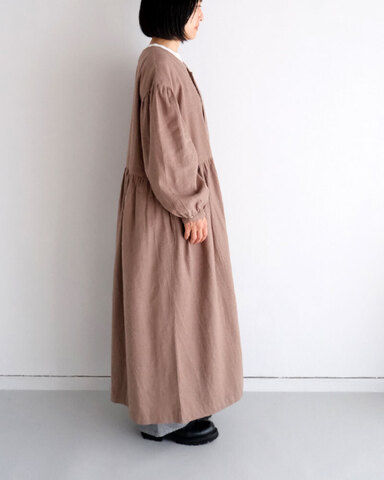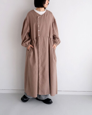 UNIVERSAL TISSU|キュプラコットンリネン コンパクトカラー シャツワンピース