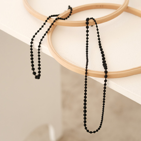 シックな装いに寄り添いながらも、糸ならではの軽さとやさしさで、黒をやわらかく纏える一本です。