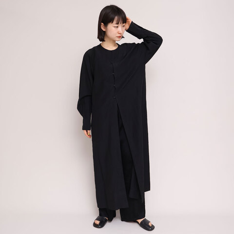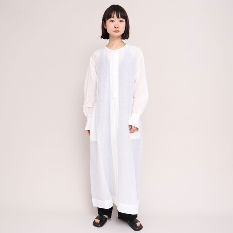 前開きデザインの長袖ワンピース。