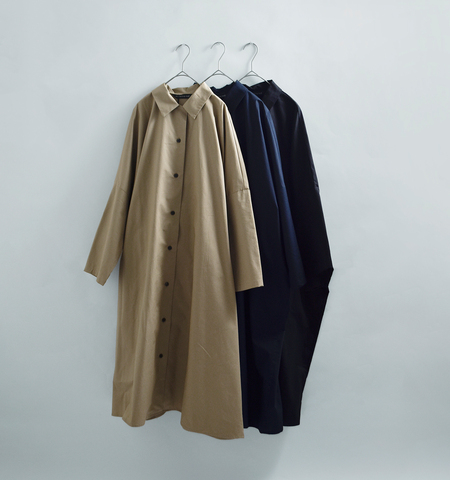 mizuiro indらしい丸みのあるフォルムと、ゆったりとしたシルエットが印象的なシャツワンピース。ライトアウターとしても活躍する一枚です。