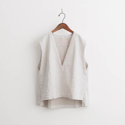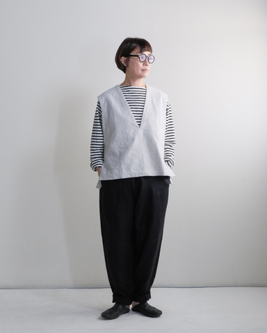 ほどよくゆとりをもたせた、オーバーサイズのVネックベスト。