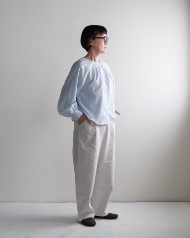 さらに丁寧に揉み込むことで、やわらかなシボ感と立体感をプラス。麻のほどよいハリと綿のやさしい柔らかさをあわせ持つ、心地よい素材感が魅力です。