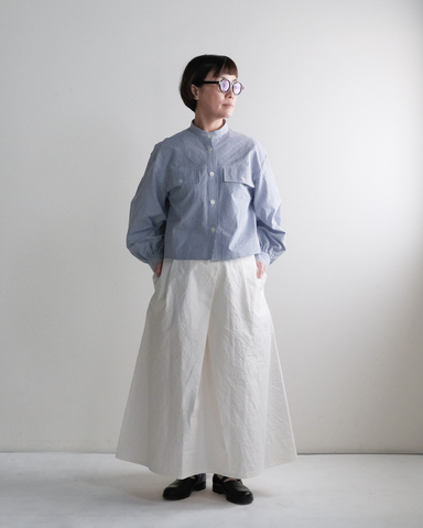 大きなフロントタックが特徴のロングスカート。