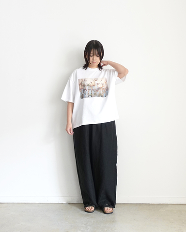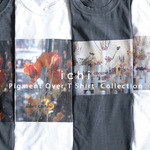 花器に生けられた草花の穏やかな情景を切り取ったフラワーピグメントTシャツ。
