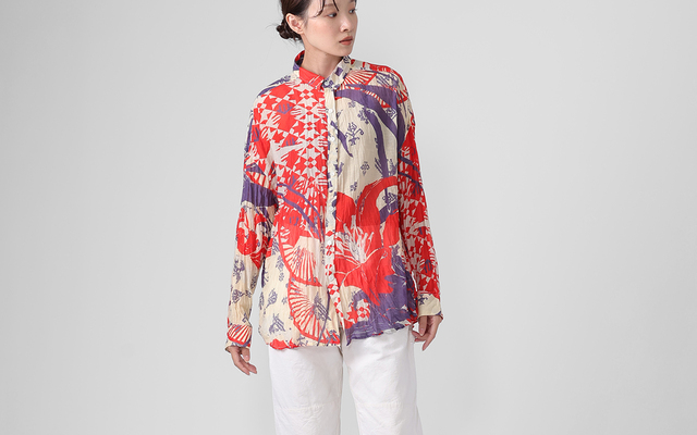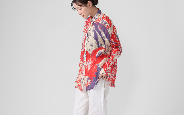 KusaKanmuriのストール柄を使用し、シャツに仕立てました。