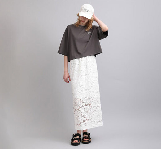 SACRA|SACRA サクラ 126113071 ラッセルレース クロップドシャツ LEAF RASCHEL LACE CROPPED SHIRT