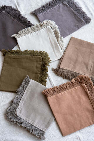 やわらかな風合いと、さりげないフリンジが印象的なクッションカバー