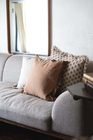 綿やフェザーでふんわりと柔らかく、ウレタンなどハリのある素材で凛と。暮らしや好みに合わせて、お好きなクッションを組み合わせてお使いください。