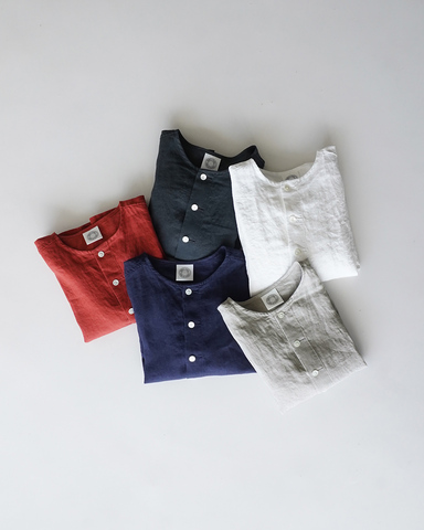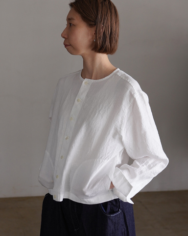 40番手のリネンを使用した平織生地で、染色後にタンブラー加工を施すことで、麻特有の硬さをやわらげたふっくらとした風合いに。さらりとした肌触りで、季節の変わり目も快適に着用できます。