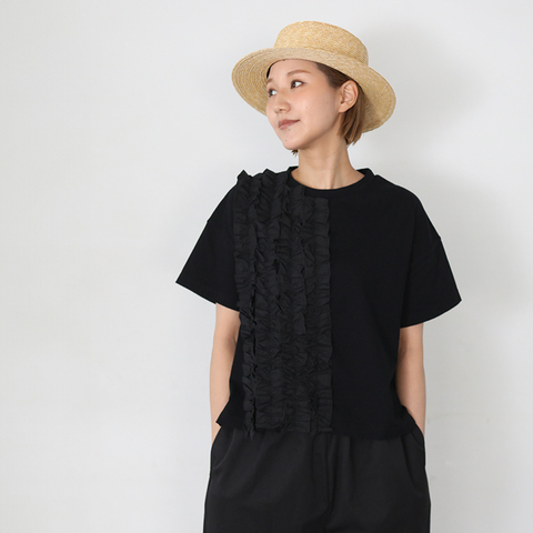 harmonie|やわらかオーガニックコットン100% 5分袖タートルネック 半袖シャツ