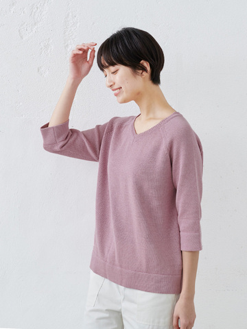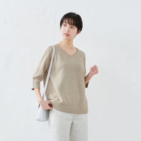 リネン100%の織物はよく見かけますが、糸切れしやすく編み立てるのが難しいリネンを、他の素材を交ぜる事なく、和歌山のメリヤス工場でゆっくりと丁寧に編み立ててつくりあげたカットソー素材(編み物)のプレミアムリネン®。リネンならではの、さらりとした風合いで、素肌に着ると非常に心地よい。また、吸放湿性に優れているので、汗をかいても爽やかさを持続。風通しもよく真夏でも蒸れにくく非常に涼しく着ていただけます。「着て」「洗濯」を繰り返す度に、風合いも柔らかく馴染んでいきます。そんなプレミアムリネン®を是非お試しください。