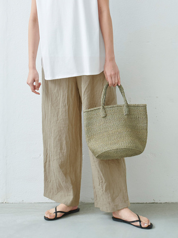 リネン100%の織物はよく見かけますが、糸切れしやすく編み立てるのが難しいリネンを、他の素材を交ぜる事なく、和歌山のメリヤス工場でゆっくりと丁寧に編み立ててつくりあげたカットソー素材(編み物)のプレミアムリネン®。リネンならではの、さらりとした風合いで、素肌に着ると非常に心地よい。また、吸放湿性に優れているので、汗をかいても爽やかさを持続。風通しもよく真夏でも蒸れにくく非常に涼しく着ていただけます。「着て」「洗濯」を繰り返す度に、風合いも柔らかく馴染んでいきます。そんなプレミアムリネン®を是非お試しください。