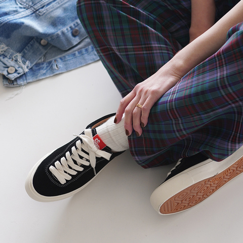 上品なスエード素材と、スケートボード由来の設計を融合させたローカットスニーカー。ストリート感をほどよく取り入れながら、クラシックで落ち着いたシルエットに仕上げられています。